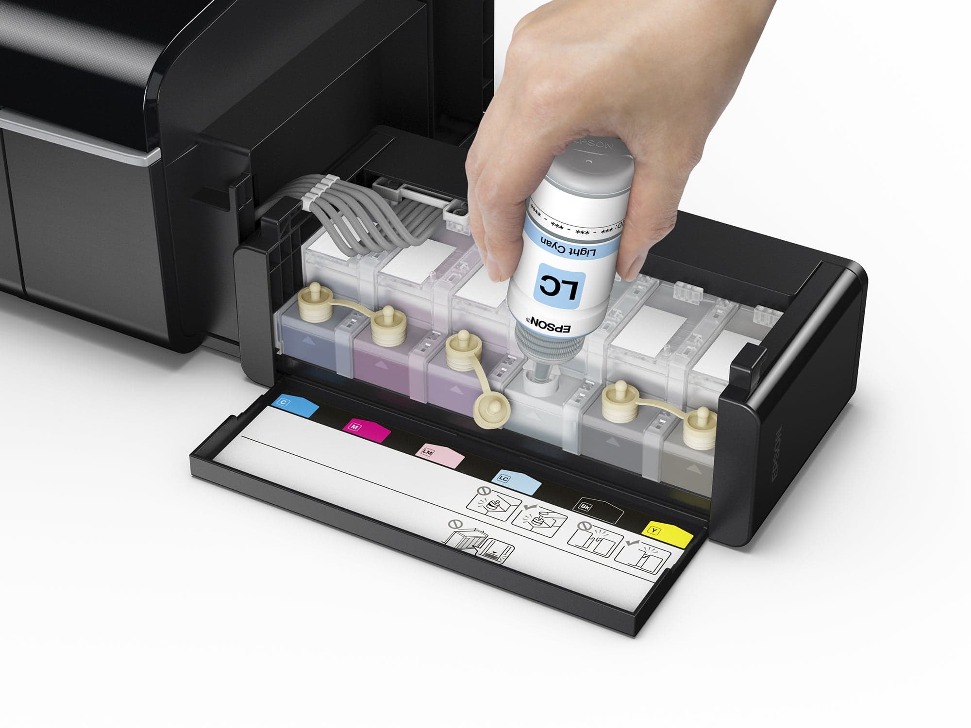 Кіріктірілген сия ыдысының жүйесі үнемді фотосуреттерді басып шығаруды қамтамасыз етеді. 70 мл сия бөтелкелерін пайдалана отырып, өте жоғары сыйымдылықтағы сия ыдысы бір бетке өте төмен бағамен 10x15 см өлшемдегі 1900 сапалы фотосуретті басып шығара алады. Сияны жылдам толтыру технологиясының, бөтелкелердің анық белгілерінің және тамшылатпайтын саптамалардың арқасында жеке сия бөтелкелерімен толтыру жылдам әрі оңай.